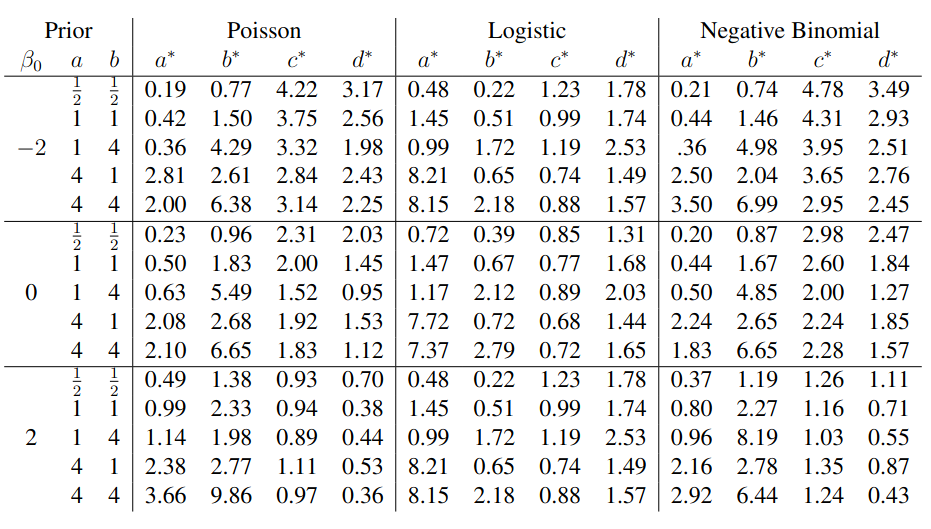 Below I include a bare-bones implementation of a function that computes \((a^*, b^*, c^*, d^*)\) for the GBP approximation corresponding to a desired \(\text{Beta}(a, b)\) prior on \(R^2\). Its purpose is simply to show that minimizing the divergence is not the tedious part; dealing with all the details across different model families is.